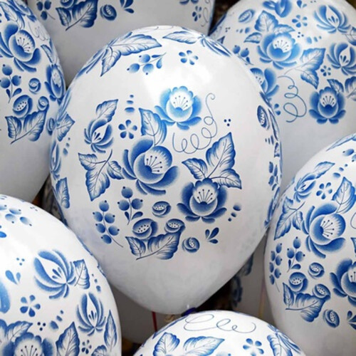 - Шары из натурального латекса с пятисторонним шелкографическим принтом. Белая матовая пастель с рисунком в виде цветочного узора, нанесенного синей краской. Размер шаров в надуве: 35 см. Они подходят как для надува воздухом, так и заполнения гелием. Идеальный ассортимент для праздничных оформлений. Идеальный ассортимент для розничной продажи воздушных шариков. Воздушные шары изготавливаются из экологически безопасного 100%-ного натурального латекса. В окружающей среде разлагаются на безопасные компоненты примерно с той-же скоростью, как обычные листья деревьев. После использования лопнуть и утилизировать как бытовой отход.