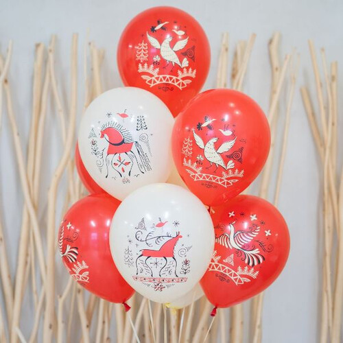 Воздушные шары Русском стиле Мезенская роспись 10 шт