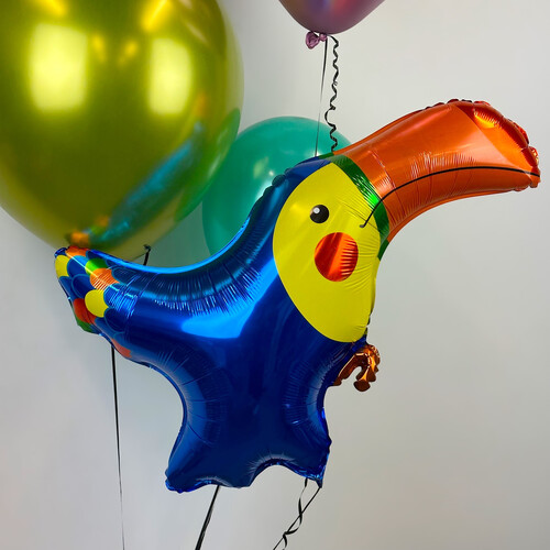- Воздушный шар "Яркий Тукан" от МаскаПати станет ярким акцентом на любой вечеринке. Этот глянцевый шарик в форме забавного тукана, выполненный из прочной фольги, порадует как детей, так и взрослых. Его насыщенный синий цвет и реалистичный рисунок сделают ваш праздник незабываемым. Шарик отлично подойдет для оформления гавайской вечеринки, дня рождения или любого другого торжества.
