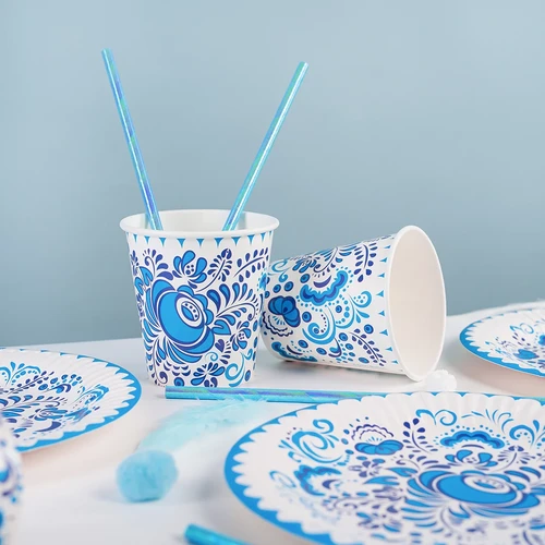 Представляем вашему вниманию набор из 6 изящных стаканов «Русский стиль Гжель» объёмом 250 мл каждый — идеальное решение для создания аутентичной атмосферы на любом празднике или вечеринке. Эти стаканы выполнены в традиционном русском художественном стиле Гжель, который славится своими изящными синими узорами на белом фоне. Каждый стакан украшен уникальным орнаментом, отражающим богатое культурное наследие России.