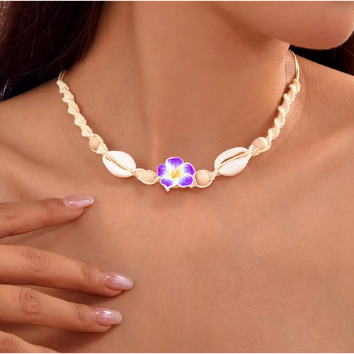 Эксклюзивное колье-чокер изготовлено вручную для тех, кто хочет подчеркнуть свою индивидуальность и стиль на гавайской вечеринке или любом другом мероприятии. Главным украшением этого украшения являются натуральные ракушки, которые придают ему особый шарм и морскую атмосферу.